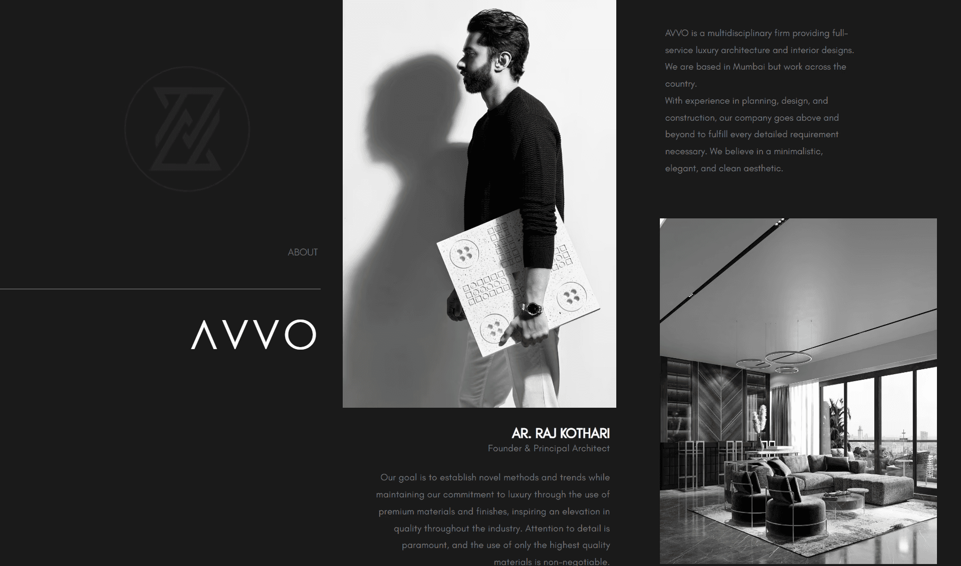 We design a visually appealing, modern interface that reflects Avvo Architects’ architectural aesthetic and attention to detail. Layouts, typography, and imagery are chosen to present their projects elegantly and clearly. Navigation is intuitive, making it easy for visitors to explore services, view past projects, and get in touch. The resulting design communicates professionalism, creativity, and trust — positioning Avvo Architects as a top-tier architecture firm in mumbai.